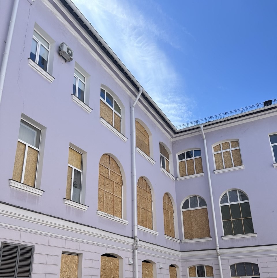 The majority of the territory has been cleared of debris and waste. In the administrative and academic buildings, 24 windows have already been replaced. Repair work is ongoing